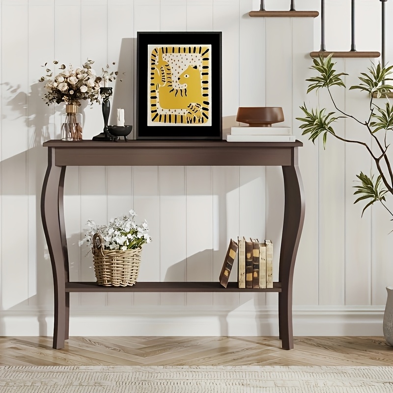 Farmhouse Console Sofa Table With S-Shape Wooden Legs, Chic Accent Narrow Console Table With Sturdy Frame And Open Shelf For Entryway, Living Room And Hallway, Space-Saving Design, Versatile And Easy To Assemble