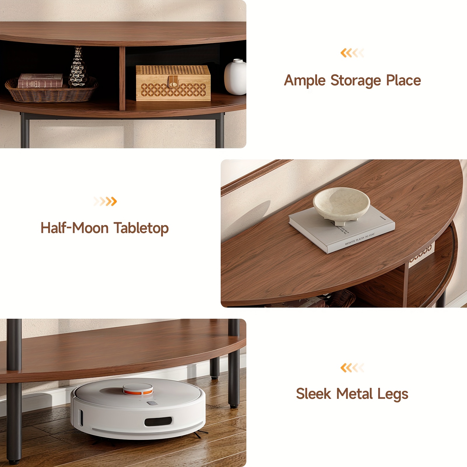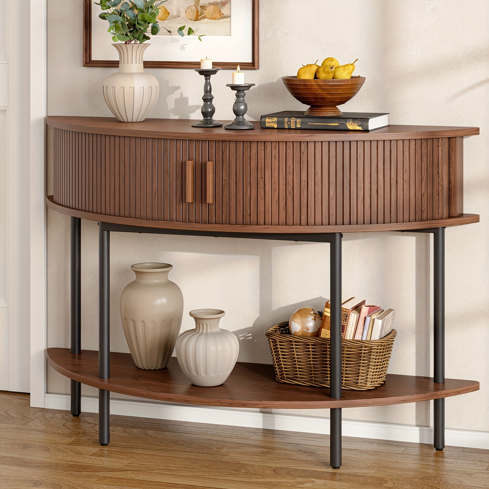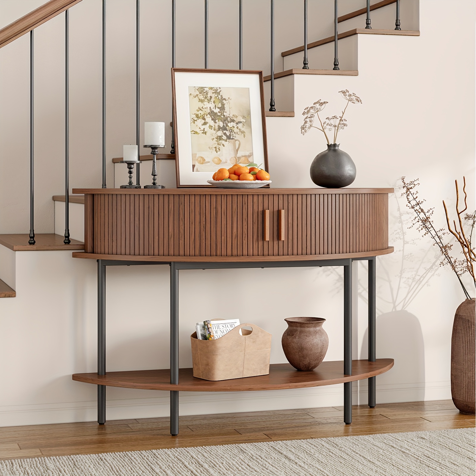 Half Fluted Console Table | Mid-Century Modern Style, Entryway Table with Storage, Behind Couch Table, Suitable for Entryway, Hallway, Living Room, Small Spaces, Walnut\u002FBlack, Made of Hardwood by PAZCASA